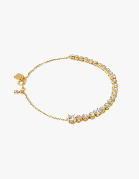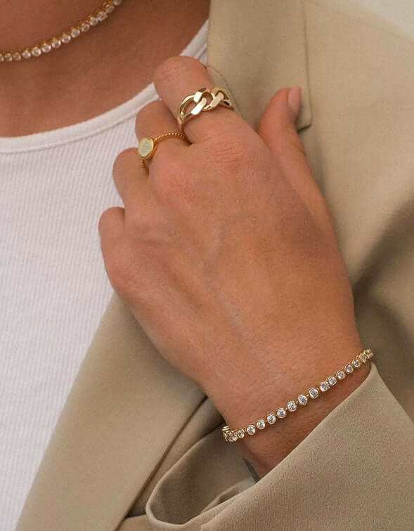 How pretty is this pearl bracelet? Ron’s sweet pearl design, set on a sweet chain, creates the appearance of pearls floating around your wrist. Pair with your other favourite charm bracelets and gold oversized watch.